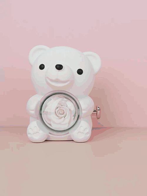 Each box includes a teddy bear display, a preserved rose, and a necklace hidden inside.